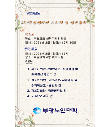 부광노인대학(학장 남산형)은 9월 2일 오전 10시, 부광교회 본당 대강당에서 차준택부평구청장님 안애경구의회의장님, 시의회문화복지위원회 유경희위원장님, 신은호 전 시의회의장님 등…